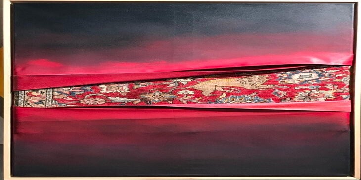 Katibeh 04 120x120 // Katibeh 05 120x80 // Mirror embroidery 70x80 // 4 x Gold leaf on persian rug 70x100 // 2 x Gold leaf on persian rug 100x120