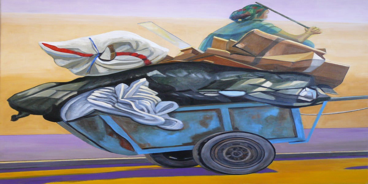 “ De mens onderweg in allerlei situaties, fysiek of geestelijk” Vervoersmiddelen zijn hierbij dikwijls aanwezig.